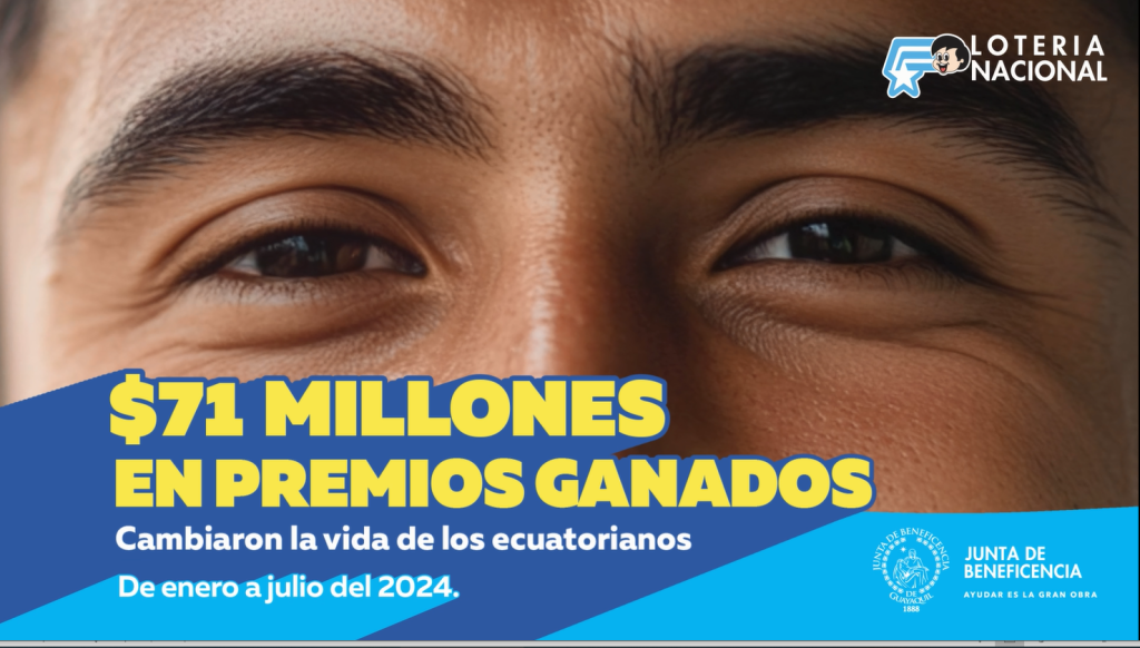 Lotería Nacional ha logrado cambiar la vida de innumerables ecuatorianos, con más de $71 millones de premios ganados en el primer semestre del 2024 con los diferentes productos de su portafolio, como son: Lotería, Lotto, Pozo Millonario, Raspaditas, Bingazo, Bet593 entre otros.